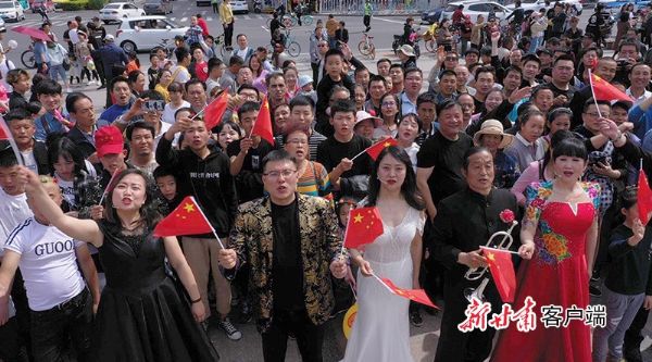 當(dāng)天,藝術(shù)家們用形式多樣的文藝演出表達(dá)了對(duì)祖國(guó)的熱愛(ài),吹著嘹亮的小號(hào)、激情高歌《我和我的祖國(guó)》。歡樂(lè)的氣氛吸引了中山橋附近的游客以及大學(xué)生志愿者,在藝術(shù)氣息的感染下,市民搖動(dòng)五星紅旗,共唱《我和我的祖國(guó)》,愛(ài)國(guó)情懷在人群中激蕩。