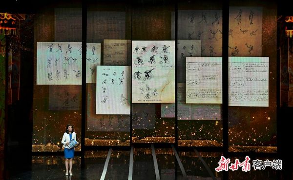 在主持人旁白、演員情景演繹與大屏幕播放79版《絲路花雨》主創(chuàng)手稿結(jié)合的方式下,晚會一一呈現(xiàn)了《絲路花雨》創(chuàng)排歷程的異常艱辛與主創(chuàng)人員精益求精的藝術(shù)匠心。