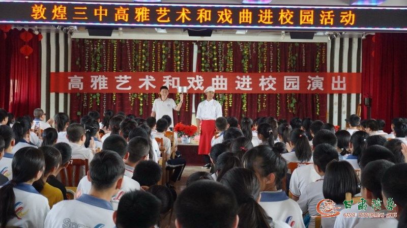 為積極推進校園文化建設(shè),豐富師生業(yè)余文化生活,6月25日起始,甘肅演藝集團敦煌藝術(shù)團走進敦煌市各大校園,拉開了2019“高雅藝術(shù)和戲曲進校園”敦煌站的演出序幕。