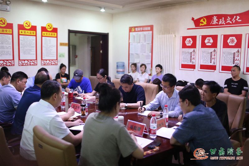 2019年7月4日下午,集團(tuán)黨委委員、副總經(jīng)理王衛(wèi)平、張國偉同志帶領(lǐng)集團(tuán)調(diào)研組一行7人到秦腔藝術(shù)劇院調(diào)研,劇院召開座談會,劇院黨總支書記、總經(jīng)理崔華功,黨總支委員、副總經(jīng)理蘇鳳麗及全體中層干部、黨員同志參加。